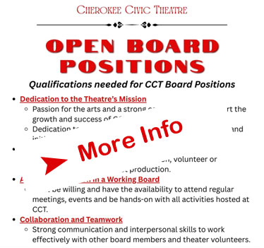 The mission of Cherokee Civic Theatre is to afford opportunities for